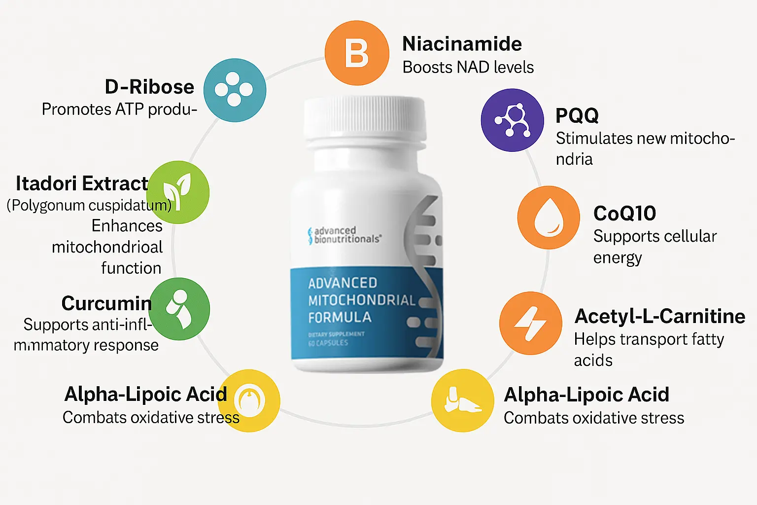 Key ingredients in Advanced Mitochondrial Formula and their roles in
